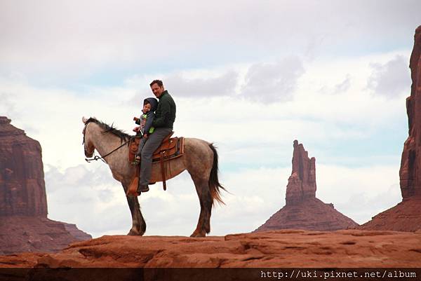 這裡有個景點是著名西部電影中曾經出現的經典場景,只要3塊美金就可以去拍如劇照一樣騎著馬站在斷崖的照片。然而天候不佳,狂風暴雨,這裡也暫時停止服務。還好臨走前天氣轉晴,我們回程繞回去拜託他讓我們拍,終於可以讓老公過過當西部牛仔的癮!